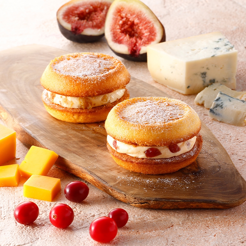 以無花果點綴於卡門貝爾費南雪中,濃厚的起司香氣與無花果柔和的甜味交織,還能吃到細細的籽粒。可愛的肉球造型與豐盈果香,讓人感受到屬於這個季節的甜蜜悸動。(起司粉中卡門貝爾含量超過75%)