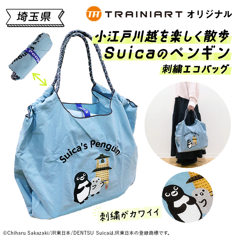 這款環保購物袋以埼玉縣川越的地標時之鐘為設計靈感,將Suica企鵝與小企鵝一同以刺繡呈現,整體色調及風格沉穩簡約,非常適合日常使用。
