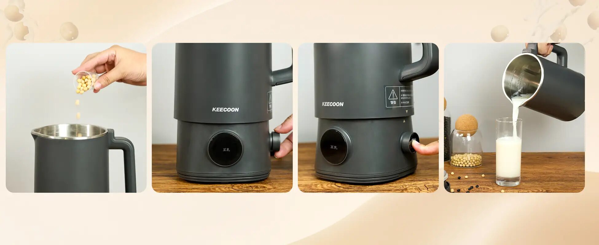 將乾燥的黃豆與水一起放入即可輕鬆完成濃郁香醇、入口滑順的豆漿,十分便利。