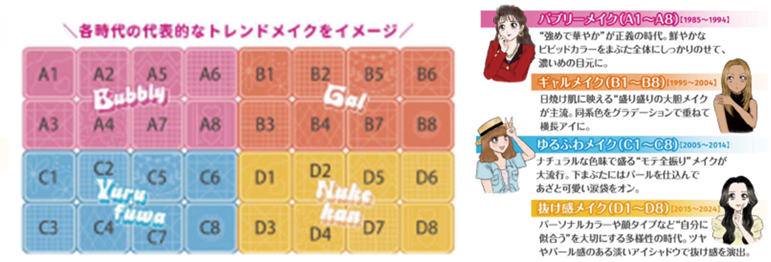 ・右下:清新自然感妝容(D1~D8)【年代:2015~2024】