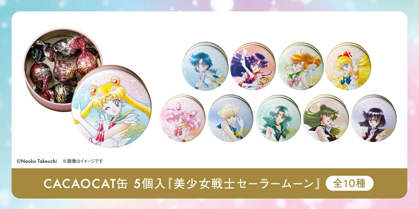 以10位水手戰士的原作插畫為設計主題的CACAOCAT巧克力鐵盒等多款聯名商品華麗亮相!甜美且大放異彩的合作,即使是大人也會為之心動。