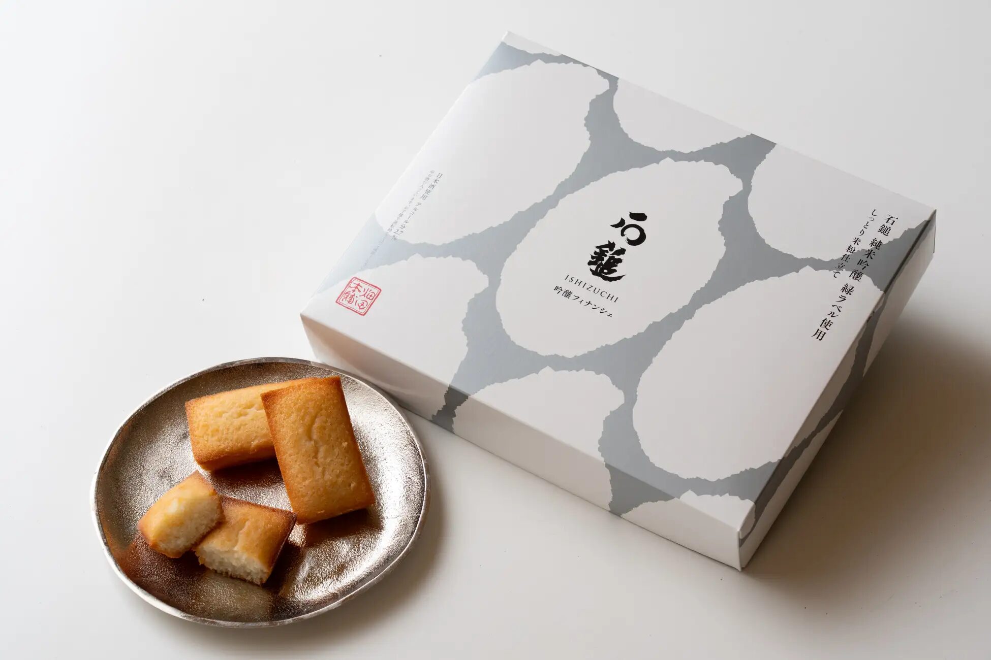 本產品以畑田本舗原創的米粉費南雪為基底,奢侈地使用了石鎚酒造的招牌清酒「石鎚 純米吟釀 綠標」。