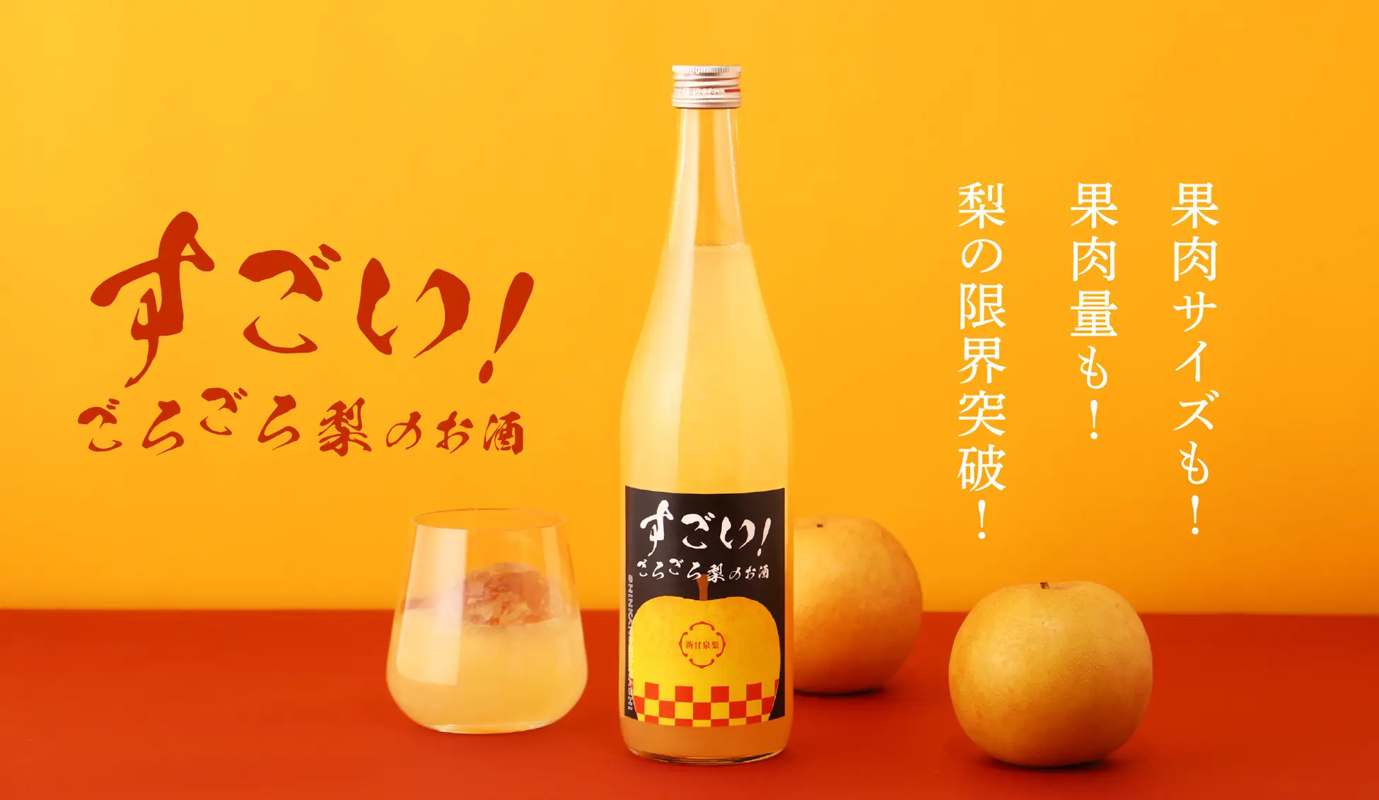 為了讓消費者徹底享受水梨的香甜多汁,本次大幅增加果肉含量。從原有「豐水梨酒」的40%,提升到「超厲害!水梨果肉滿滿的酒」的50%,幾乎到達瓶中可注入的極限。
