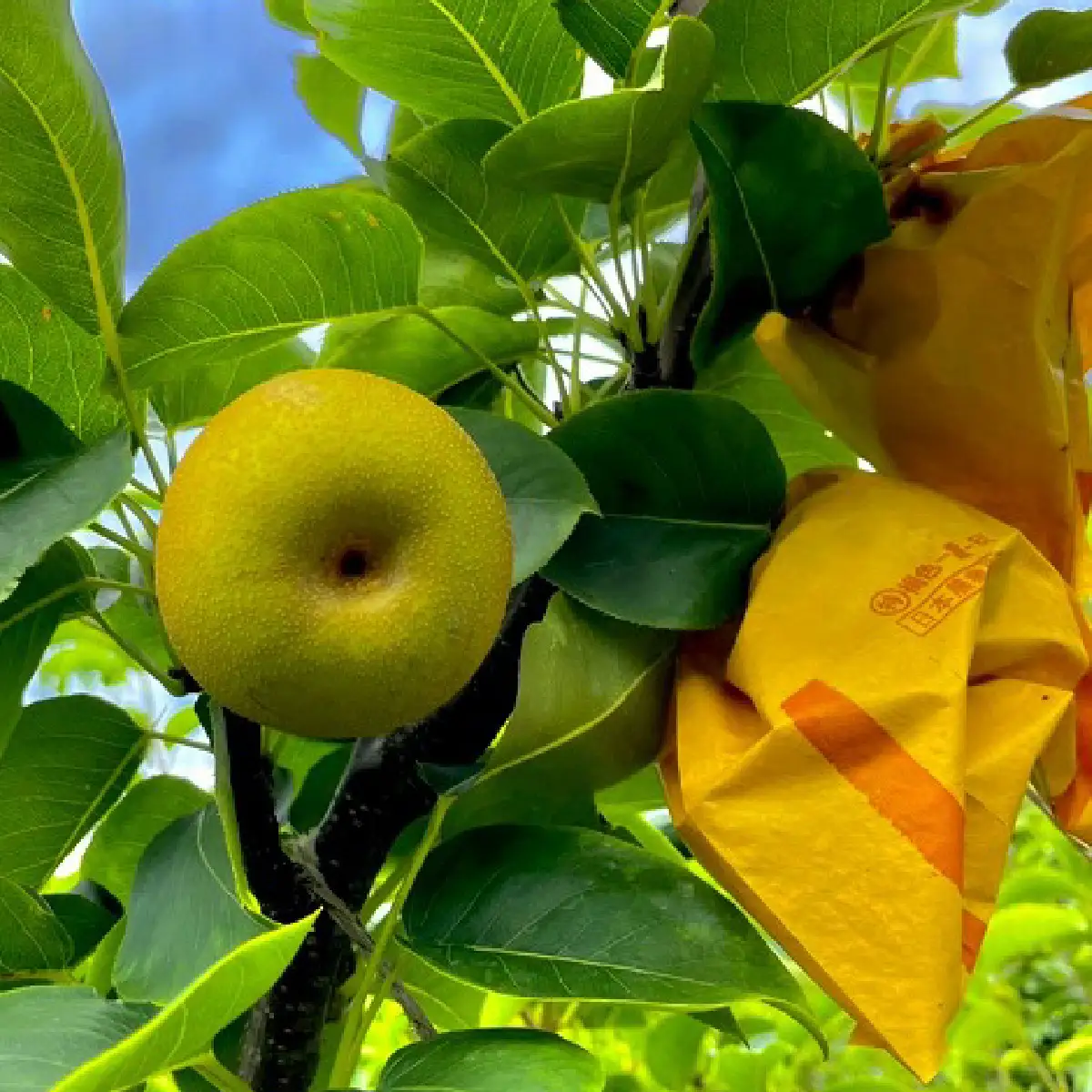 ①採用高級品牌梨「新甘泉」