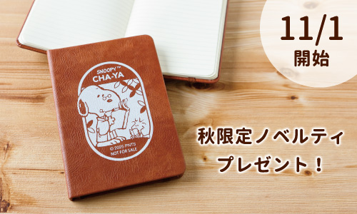 凡單筆消費滿5,000日圓(含稅),即可獲得秋季限定的仿真皮筆記本1本。